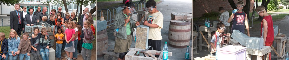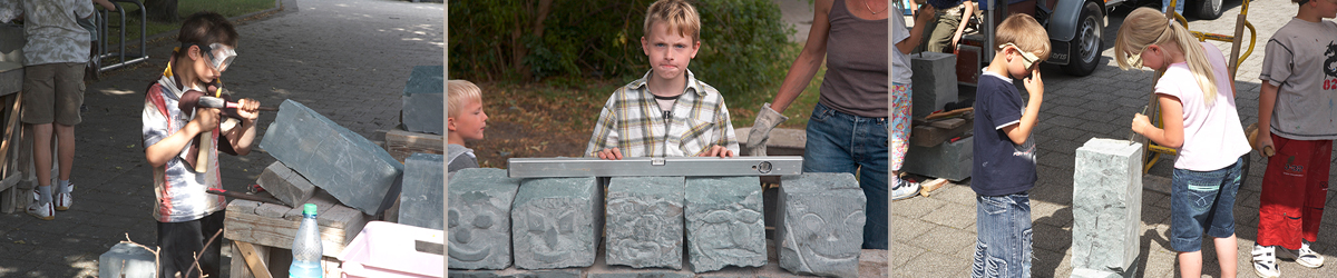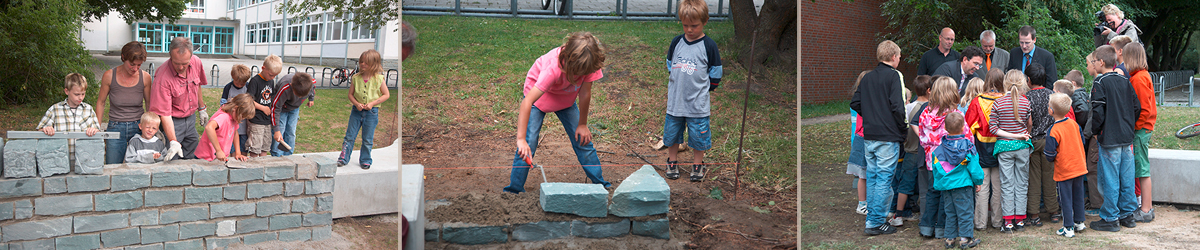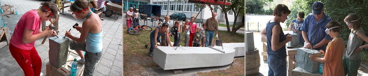 Mit Beteiligung der Anwohner und insbesondere der Jugendlichen entstand auf einer Fläche vor der Astrid-Lindgren-Schule am Kaiser-Otto-Weg ein öffentlich zugänglicher Ort der Begegnung. Die Teilnehmer hatten die Möglichkeit, Kenntnisse in der Steinbearbeitung zu erlernen und an der Entstehung des Objektes mitzuwirken.